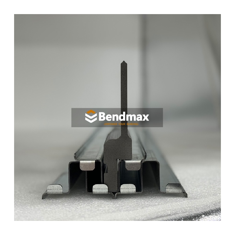 È disponibile una gamma completa di utensili standard per presse piegatrici da 120 a 30000 kN. Sono disponibili matrici a V singole, multiple e regolabili, utensili verticali rimovibili e utensili speciali per applicazioni personalizzate. Bendmax produce utensili di alta qualità, rettificati con precisione e realizzati con i migliori materiali per garantire massima resistenza e lunga durata. IL Matrice per piegatrice a V singola stile LVD Realizzata in acciaio per utensili temprato 42CrMo, questa matrice a V è progettata per la formatura di angoli acuti in componenti di precisione in lamiera utilizzati in alloggiamenti elettrici, componenti hardware e lavorazioni leggere. Quando si sceglie questo tipo di matrice a V, assicurarsi che l'apertura a V corrisponda allo spessore del materiale e al raggio interno desiderato per ottenere risultati accurati senza sovraccaricare la matrice. Per prestazioni ottimali, gli operatori devono mantenere pulite le superfici della matrice, assicurarsi del corretto allineamento della matrice ed evitare di superare i limiti di carico della pressa piegatrice per prevenire usura prematura o incoerenze angolari.