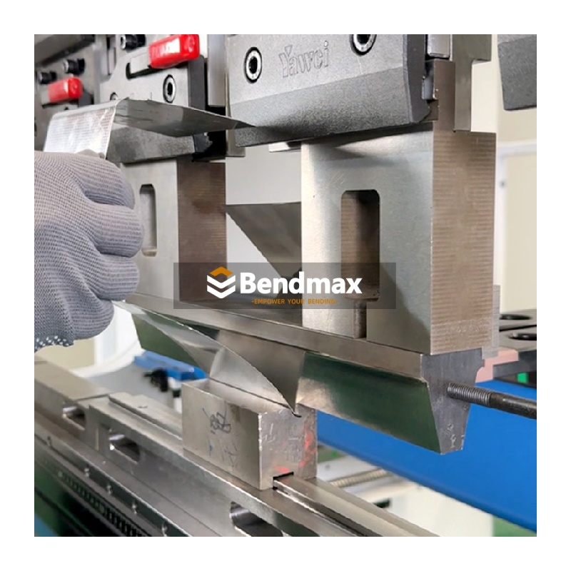 È disponibile una gamma completa di utensili standard per presse piegatrici da 120 a 30000 kN. Sono disponibili matrici a V singole, multiple e regolabili, utensili verticali rimovibili e utensili speciali per applicazioni personalizzate. Bendmax produce utensili di alta qualità, rettificati con precisione e realizzati con i migliori materiali per garantire massima resistenza e lunga durata. IL Matrice per piegatrice a V singola stile LVD Realizzata in acciaio per utensili temprato 42CrMo, questa matrice a V è progettata per la formatura di angoli acuti in componenti di precisione in lamiera utilizzati in alloggiamenti elettrici, componenti hardware e lavorazioni leggere. Quando si sceglie questo tipo di matrice a V, assicurarsi che l'apertura a V corrisponda allo spessore del materiale e al raggio interno desiderato per ottenere risultati accurati senza sovraccaricare la matrice. Per prestazioni ottimali, gli operatori devono mantenere pulite le superfici della matrice, assicurarsi del corretto allineamento della matrice ed evitare di superare i limiti di carico della pressa piegatrice per prevenire usura prematura o incoerenze angolari.