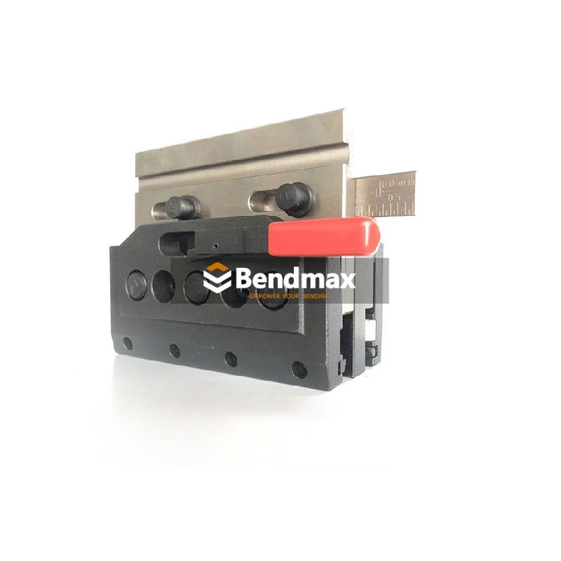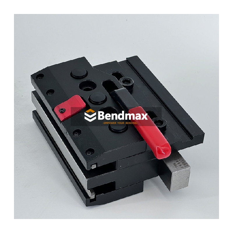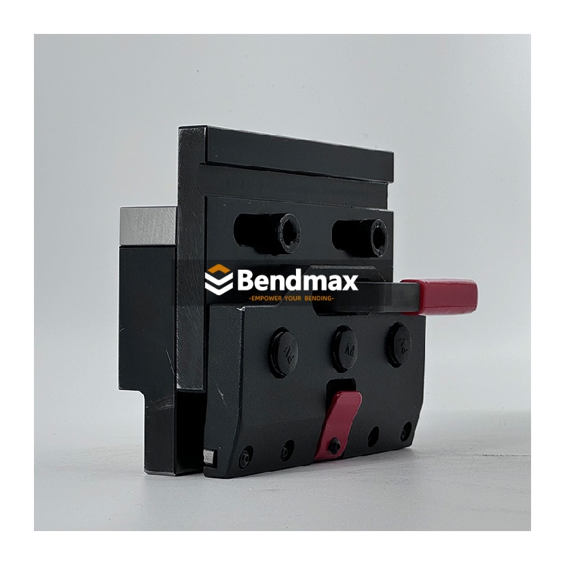IL Sistema di serraggio rapido Bendmax offre la facilità e la velocità di azionamento manuale della leva per bloccare e fissare rapidamente i punzoni di tipo europeo. Aggiungere un sistema di bloccaggio alla pressa piegatrice è come dare nuova vita alla macchina: aggiunge funzionalità aggiornate e rinnova la superficie di piegatura. I morsetti sono un ottimo modo per ridurre drasticamente i tempi di setup e cambio formato.