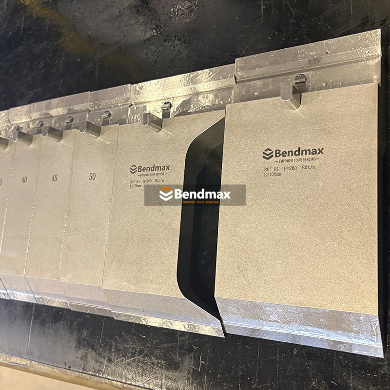 È disponibile una gamma completa di utensili standard per presse piegatrici da 120 a 30000 kN. Sono disponibili matrici a V singole, multiple e regolabili, utensili verticali rimovibili e utensili speciali per applicazioni personalizzate. Bendmax produce utensili di alta qualità, rettificati con precisione e realizzati con i migliori materiali per garantire massima resistenza e lunga durata. IL Matrice per piegatrice a V singola stile LVD Realizzata in acciaio per utensili temprato 42CrMo, questa matrice a V è progettata per la formatura di angoli acuti in componenti di precisione in lamiera utilizzati in alloggiamenti elettrici, componenti hardware e lavorazioni leggere. Quando si sceglie questo tipo di matrice a V, assicurarsi che l'apertura a V corrisponda allo spessore del materiale e al raggio interno desiderato per ottenere risultati accurati senza sovraccaricare la matrice. Per prestazioni ottimali, gli operatori devono mantenere pulite le superfici della matrice, assicurarsi del corretto allineamento della matrice ed evitare di superare i limiti di carico della pressa piegatrice per prevenire usura prematura o incoerenze angolari.