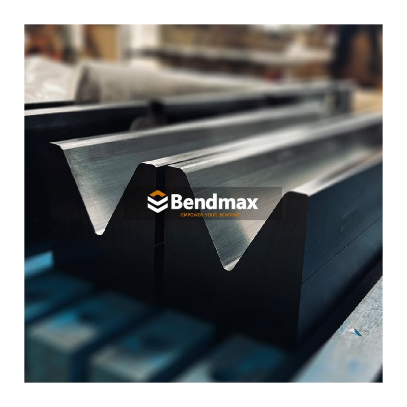 È disponibile una gamma completa di utensili standard per presse piegatrici da 120 a 30000 kN. Sono disponibili matrici a V singole, multiple e regolabili, utensili verticali rimovibili e utensili speciali per applicazioni personalizzate. Bendmax produce utensili di alta qualità, rettificati con precisione e realizzati con i migliori materiali per garantire massima resistenza e lunga durata. IL Matrice per piegatrice a V singola stile LVD Realizzata in acciaio per utensili temprato 42CrMo, questa matrice a V è progettata per la formatura di angoli acuti in componenti di precisione in lamiera utilizzati in alloggiamenti elettrici, componenti hardware e lavorazioni leggere. Quando si sceglie questo tipo di matrice a V, assicurarsi che l'apertura a V corrisponda allo spessore del materiale e al raggio interno desiderato per ottenere risultati accurati senza sovraccaricare la matrice. Per prestazioni ottimali, gli operatori devono mantenere pulite le superfici della matrice, assicurarsi del corretto allineamento della matrice ed evitare di superare i limiti di carico della pressa piegatrice per prevenire usura prematura o incoerenze angolari.