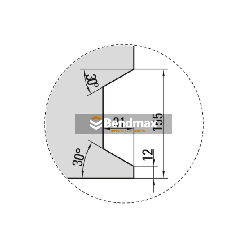 Progettato per piegatura ad angolo acuto stretto, questa matrice consente la produzione di profili ad angolo acuto precisi. Supporta anche massima capacità di carico durante la flessione a 90°, rendendola una soluzione versatile sia per operazioni di piegatura acuta che convenzionale.