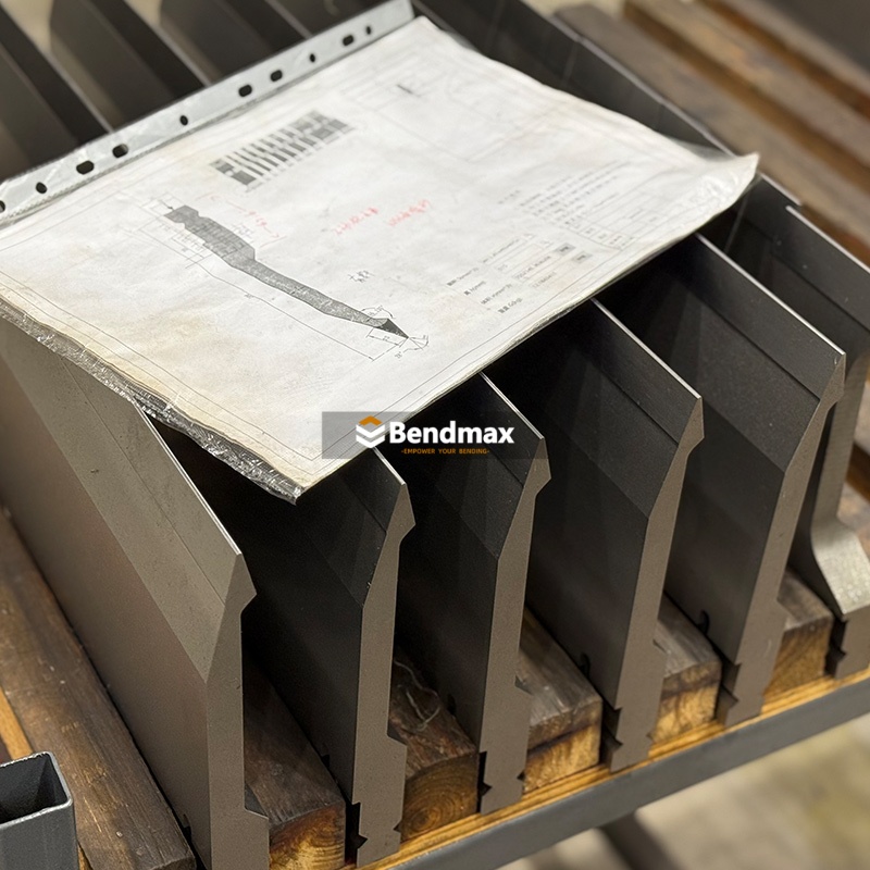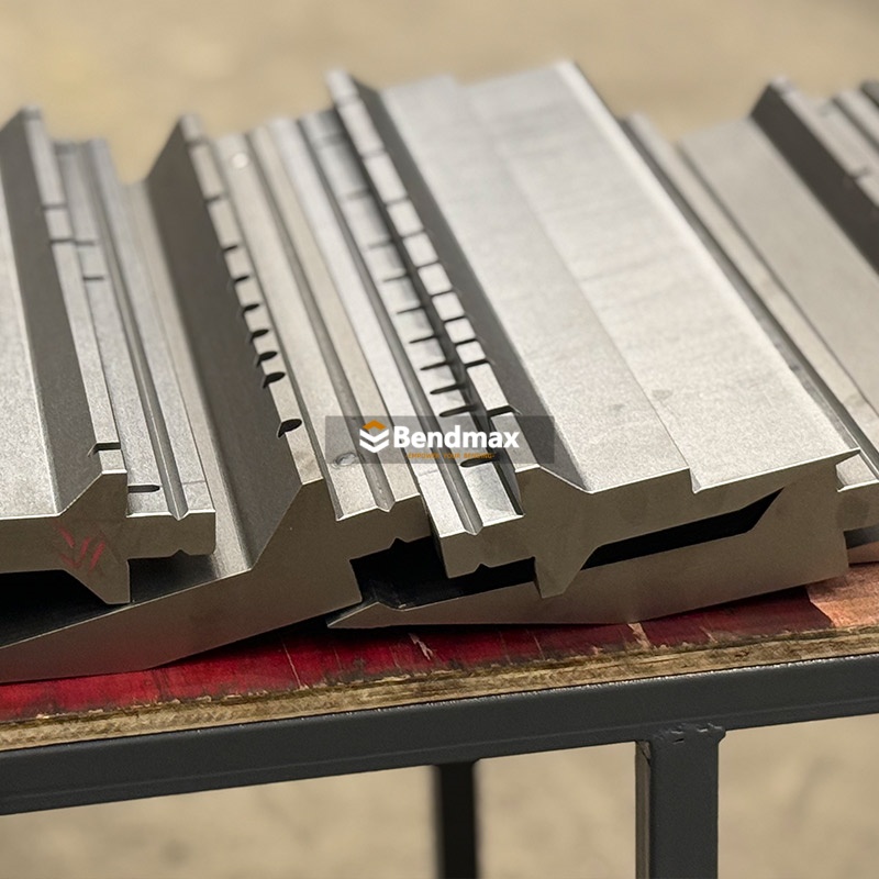 È disponibile una gamma completa di utensili standard per presse piegatrici da 120 a 30000 kN. Sono disponibili matrici a V singole, multiple e regolabili, utensili verticali rimovibili e utensili speciali per applicazioni personalizzate. Bendmax produce utensili di alta qualità, rettificati con precisione e realizzati con i migliori materiali per garantire massima resistenza e lunga durata. IL Matrice per piegatrice a V singola stile LVD Realizzata in acciaio per utensili temprato 42CrMo, questa matrice a V è progettata per la formatura di angoli acuti in componenti di precisione in lamiera utilizzati in alloggiamenti elettrici, componenti hardware e lavorazioni leggere. Quando si sceglie questo tipo di matrice a V, assicurarsi che l'apertura a V corrisponda allo spessore del materiale e al raggio interno desiderato per ottenere risultati accurati senza sovraccaricare la matrice. Per prestazioni ottimali, gli operatori devono mantenere pulite le superfici della matrice, assicurarsi del corretto allineamento della matrice ed evitare di superare i limiti di carico della pressa piegatrice per prevenire usura prematura o incoerenze angolari.